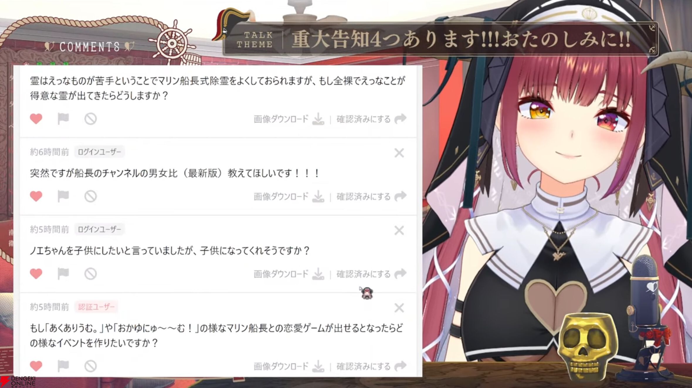 マリン船長はその後の配信で子どもからのファンレターが多くなってることなども明かしています。