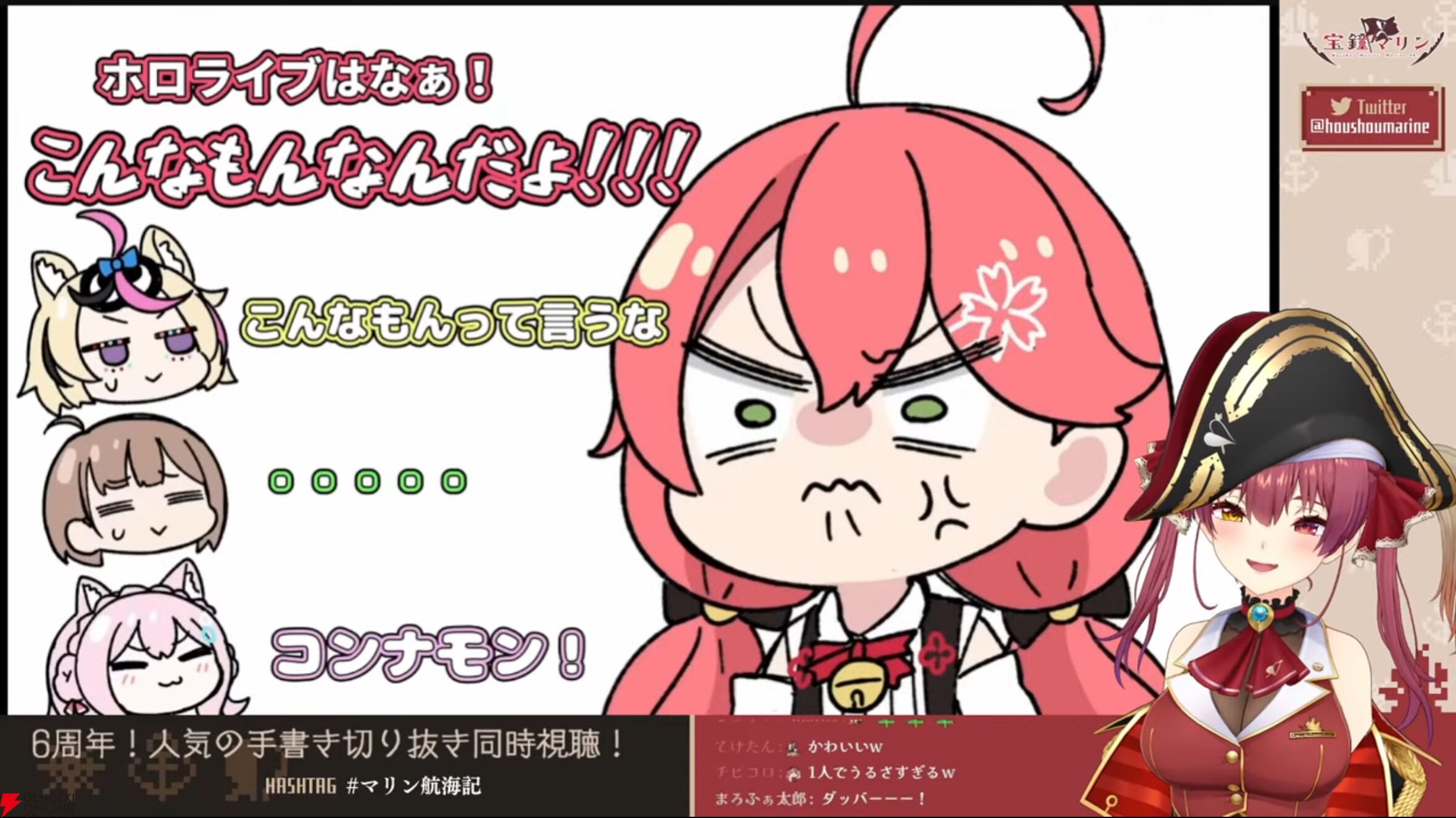 マリン船長が子どものファンレターが来ることを話した8月11日の6周年配信は「ホロライブの人気手描き切り抜きを一緒に観よう!!」というテーマでした。