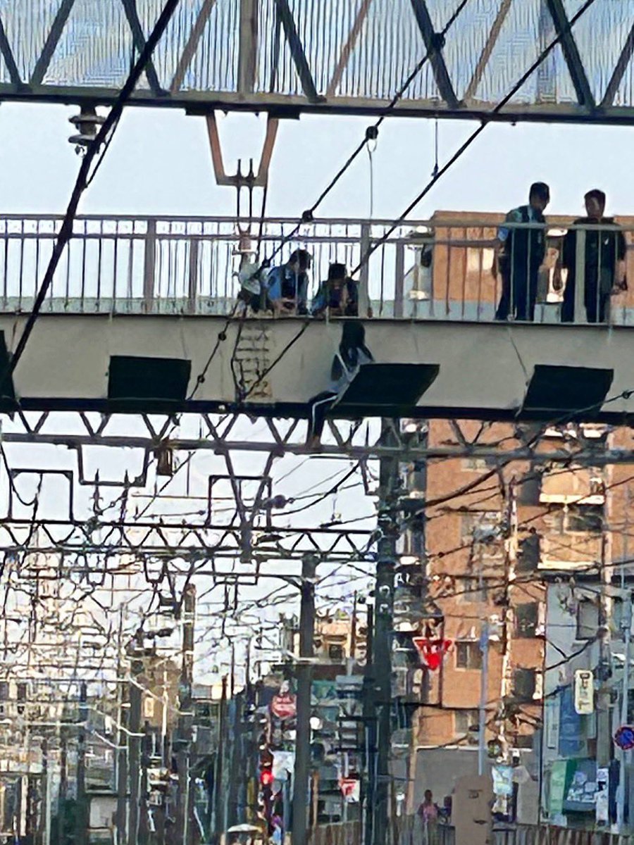 触れると丸焼けだから架線の電気切ったのか。それで、全部止まったんだね。