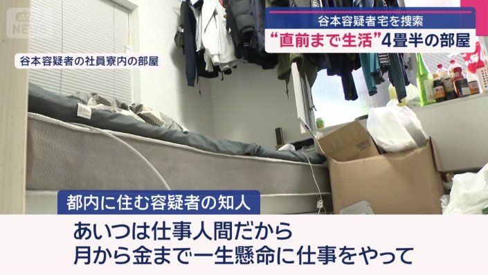 谷本容疑者が住んでいたのは4畳半ほどの部屋。ドライバーとしてつとめていた会社の社員寮です。