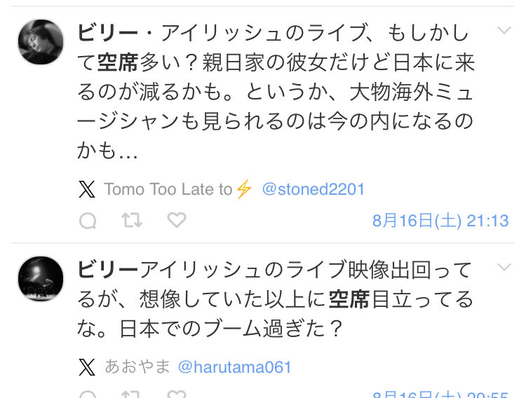 ビリーアイリッシュは来日することを知らなかった。確かにプロモ不足かもね。知ってたらチケット買いたかった。