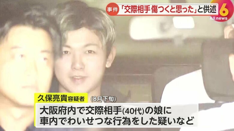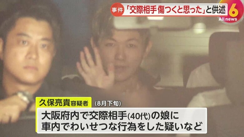 建設作業員の久保亮貴容疑者(21)は8月下旬、大阪府内で交際相手(40代)の10代の娘を無理やり家から連れ出して車で連れ回し、車内でわいせつな行為をした疑いなどが持たれています。